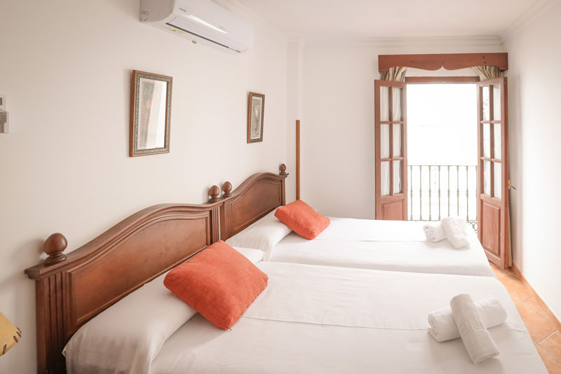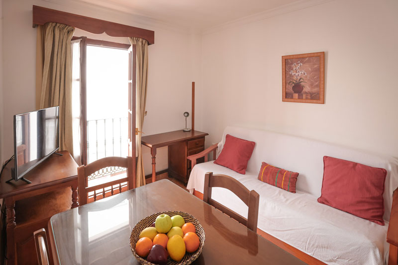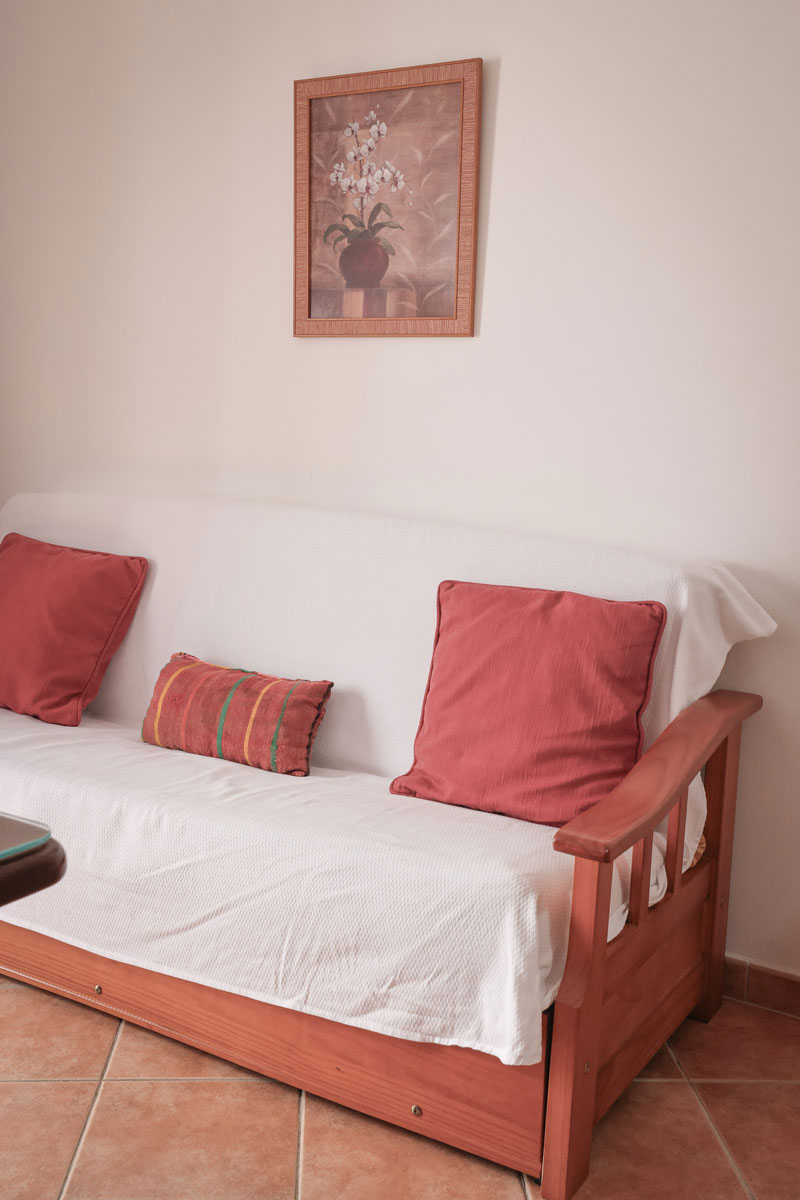 Dispone de un dormitorio con dos camas individuales y un salón con sofá cama, ideal para alojar hasta 3 personas.