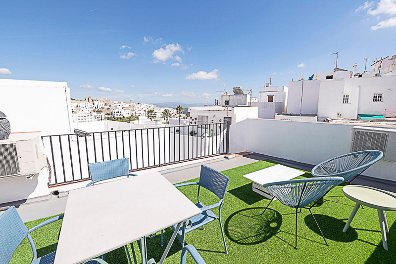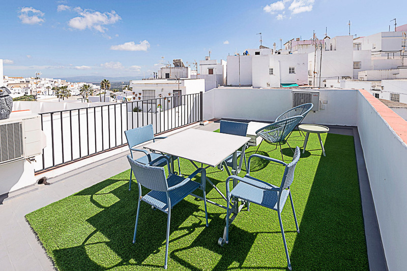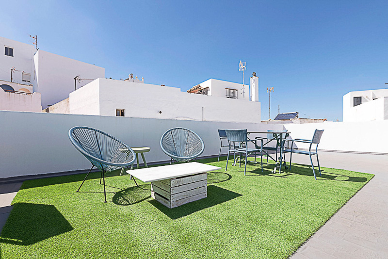 Vivienda tradicional de dos plantas con azotea, gestionada por Califa Casas, situada en pleno casco histórico de Vejer. Desde la terraza se disfrutan vistas al casco antiguo, la iglesia y el castillo.