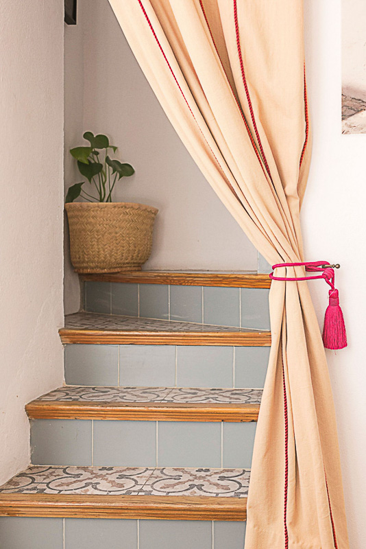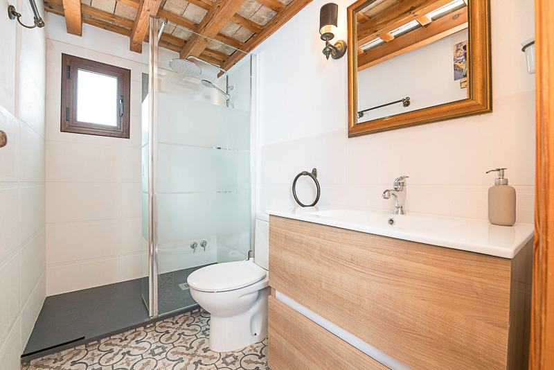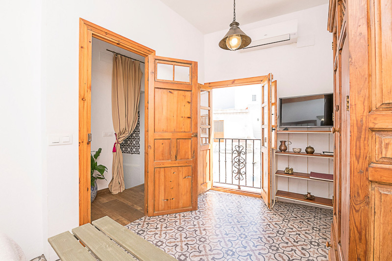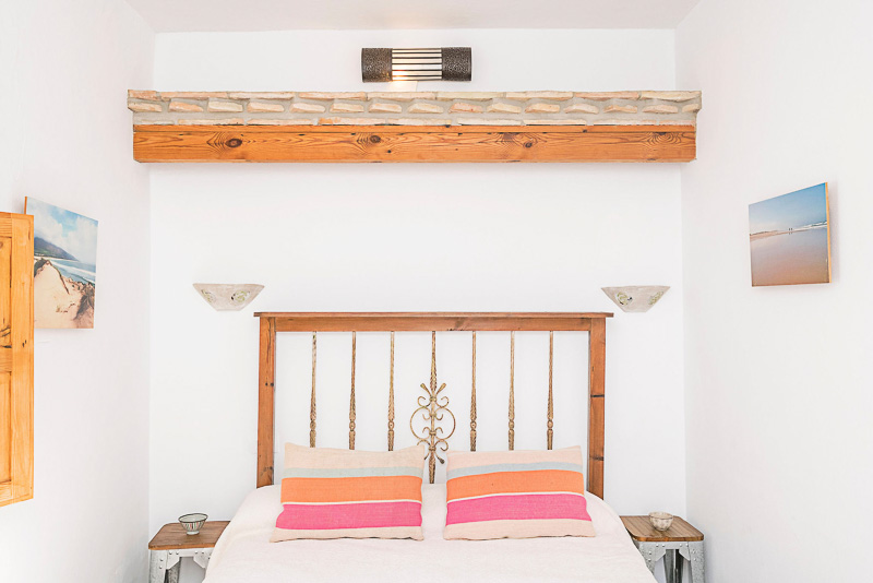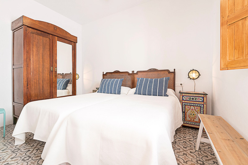 Subiendo unos escalones se llega a la primera planta, donde se sitúan dos dormitorios: uno doble con balcón tipo Julieta y otro con dos camas individuales, además de una ducha independiente. Continuando por las escaleras se accede a la terraza en la azotea, el espacio más especial de la casa, desde donde se disfrutan bonitas vistas al casco antiguo.
