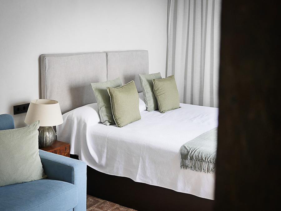 Distribuida en tres plantas, esta casa histórica ofrece seis dormitorios de gran tamaño, todos con baño privado, articulados alrededor de un patio central cubierto que aporta luz natural a toda la vivienda. A esto se suman dos amplios salones, una cocina-comedor con acceso directo a un patio exterior, terraza con vistas abiertas y zona de lavandería.