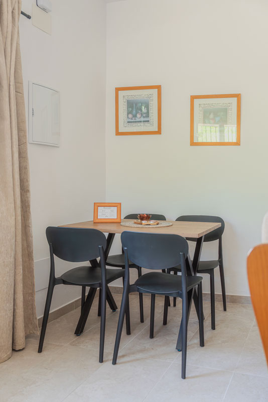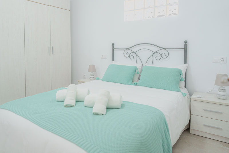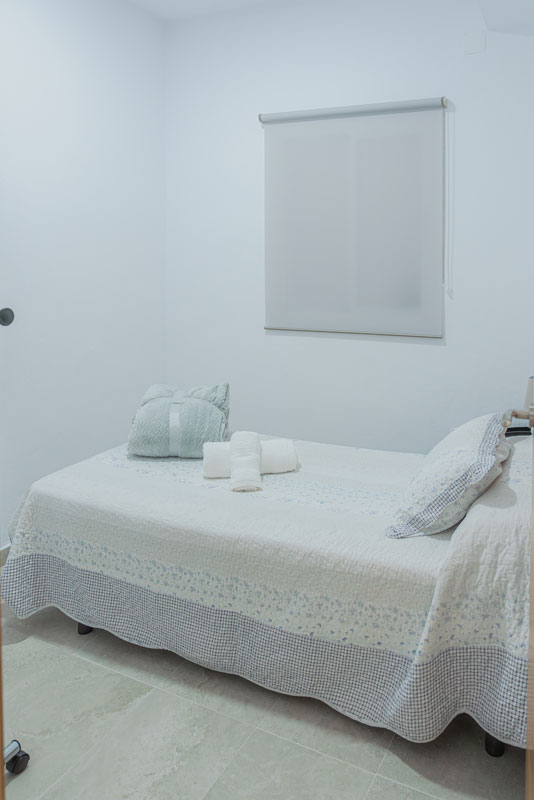El alojamiento está situado en la Calle Los Naranjos 5 y tiene capacidad para 3 personas. Consta de una cocina-salón totalmente equipada y con aire acondicionado, un baño completo con ducha y dos dormitorios: uno con cama individual y otro con cama de 1,5 m.