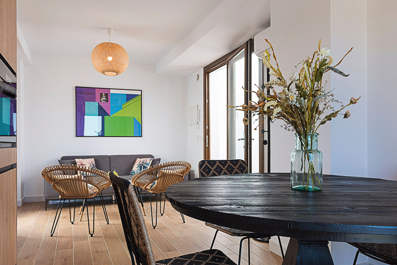 Casa Tere es un apartamento acogedor distribuido en dos niveles y coronado por una azotea privada. En la planta principal se encuentra un salón lleno de luz, con dos balcones tipo Julieta, junto a una cocina-comedor totalmente equipada y un aseo de cortesía.